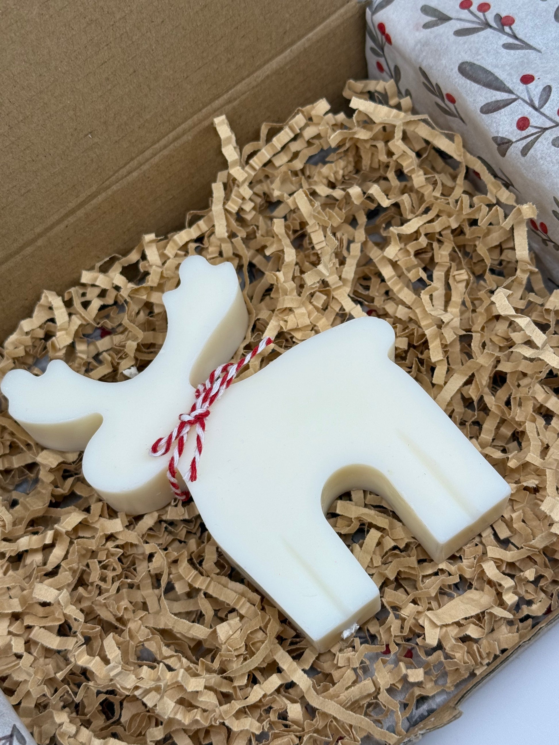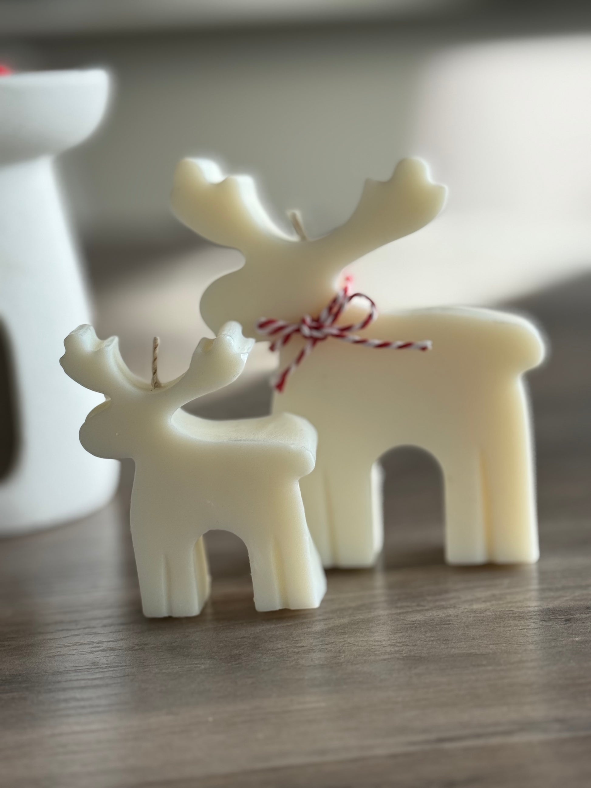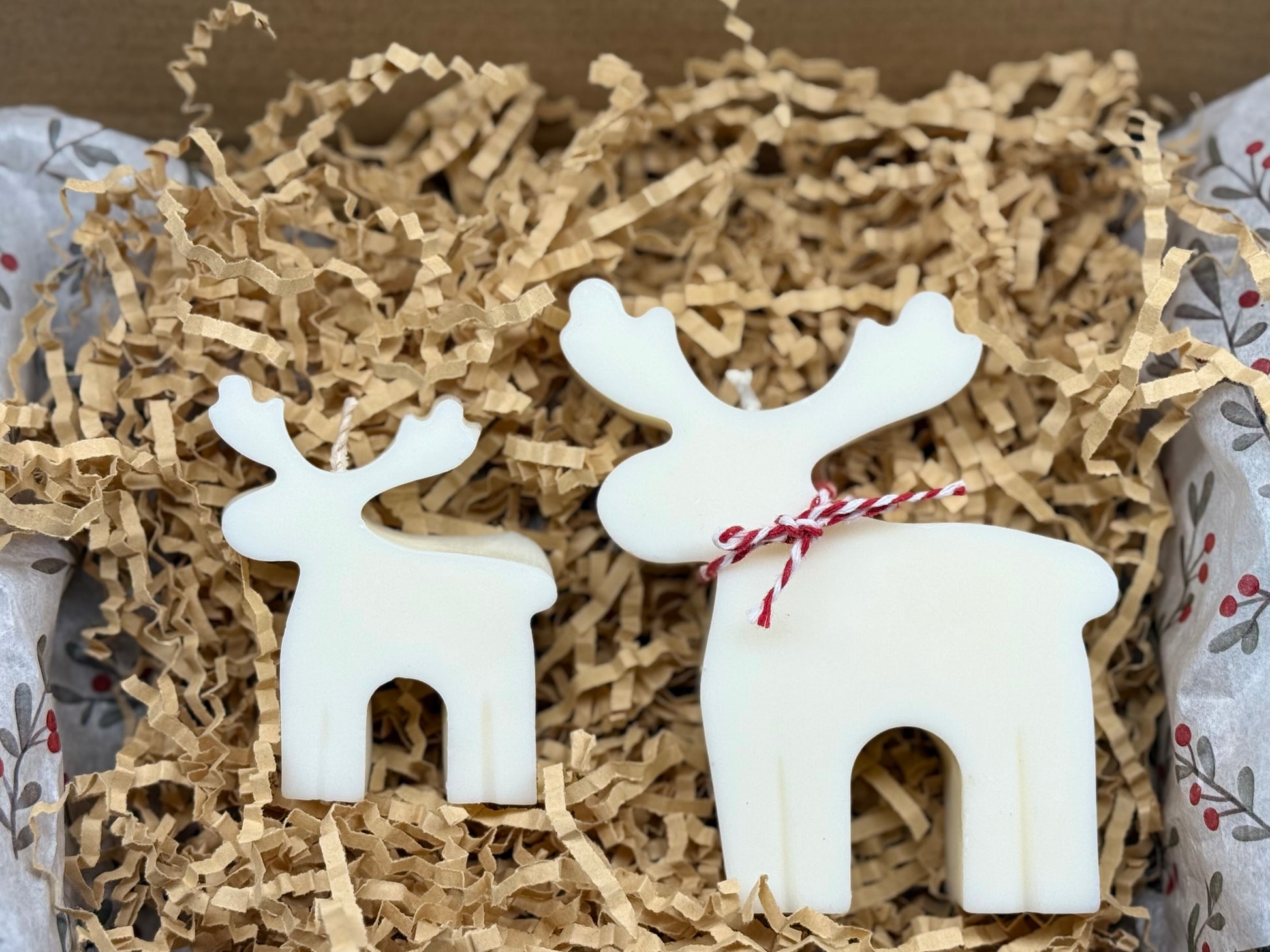 Reindyrsett er et stemningsfullt juledekor, formet som et majestetisk reinsdyrpar – far og sønn – håndlaget av 100 % ren soyavoks, duftfri og uten parafin og kunstige tilsetninger. Den naturlige flammen gir et varmt, levende lys som skaper en følelse av ro og tilhørighet, og tilfører hjemmet et elegant nordisk vinterpreg. Dette settet passer perfekt på spisebordet, i stuen eller som et magisk blikkfang i juledekorasjonen.
